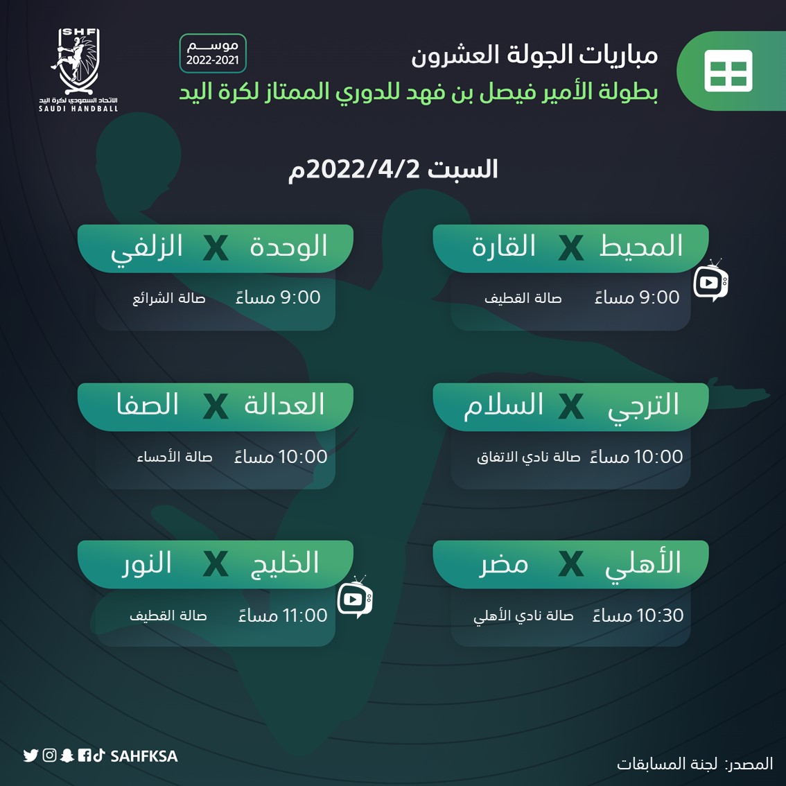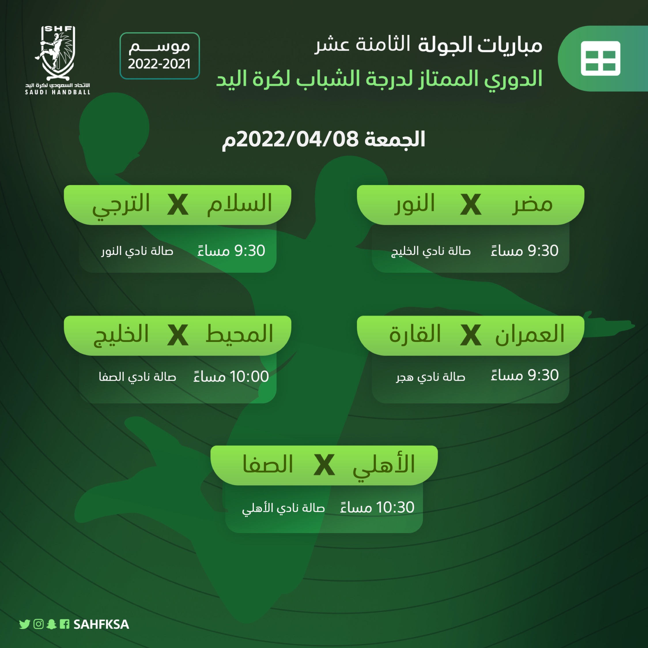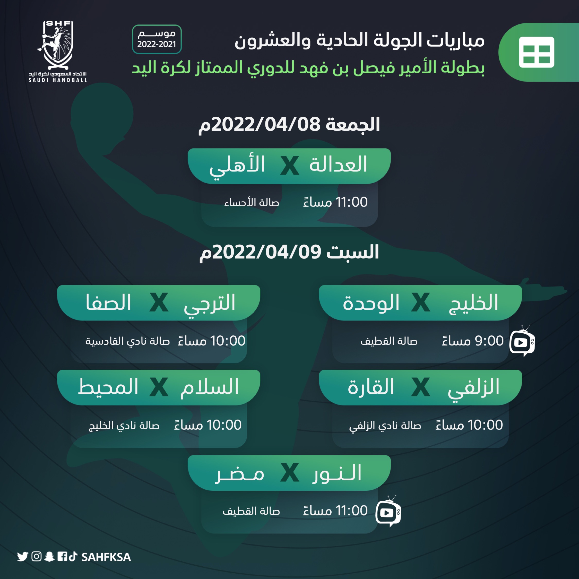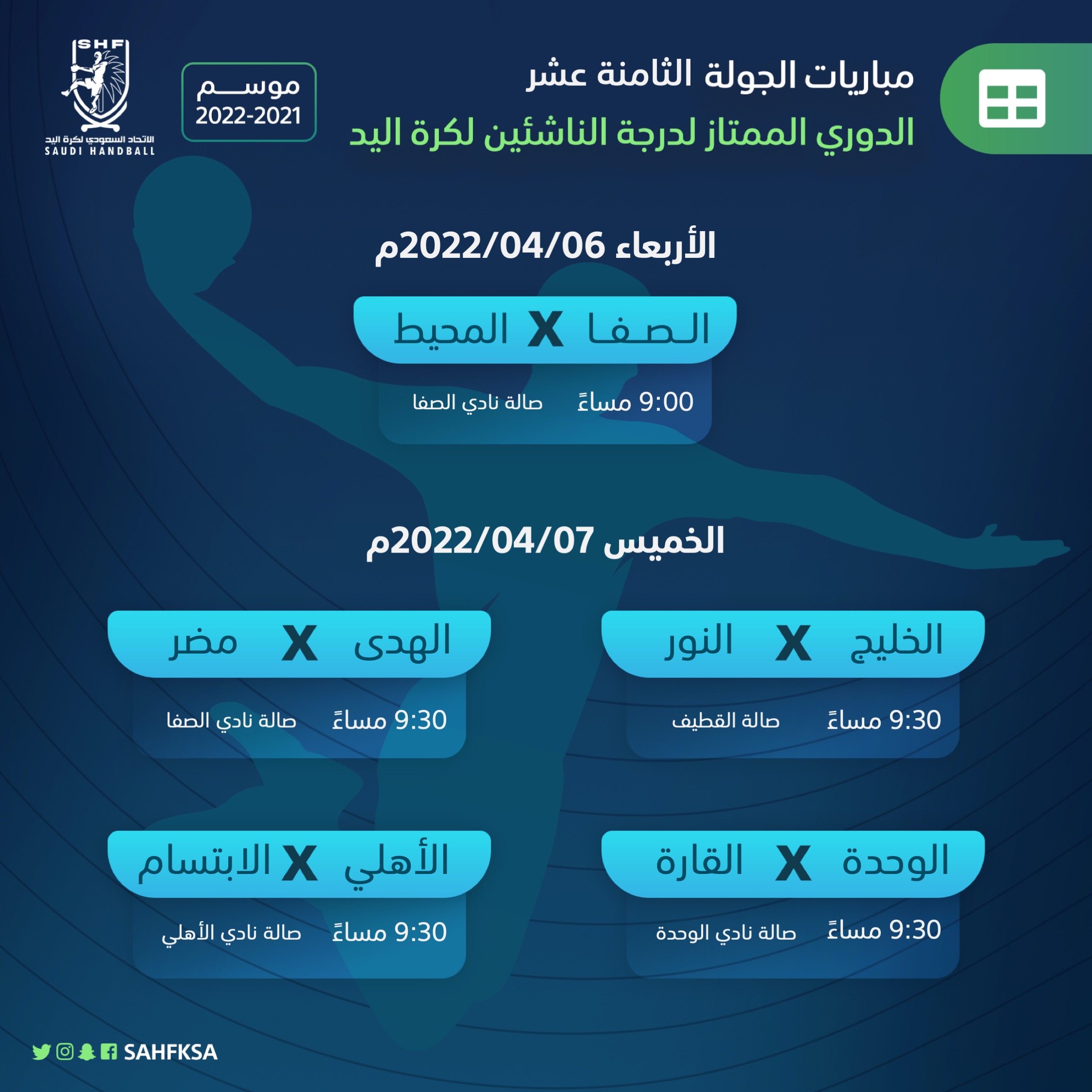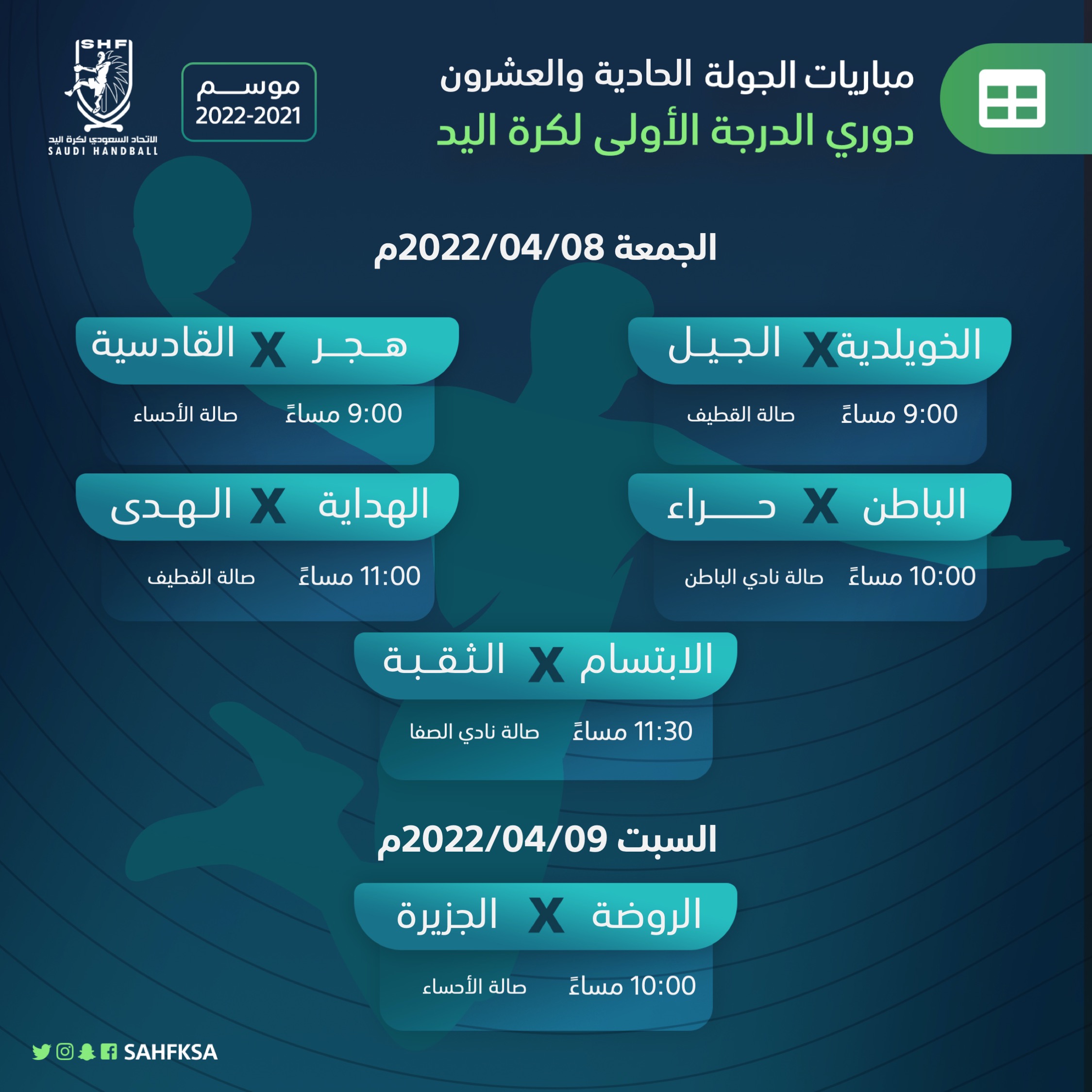 الابتسام يواجه الثقبة والهداية أمام الهدى ضمن الجولة 21 من دوري الدرجة الأولى لكرة اليد