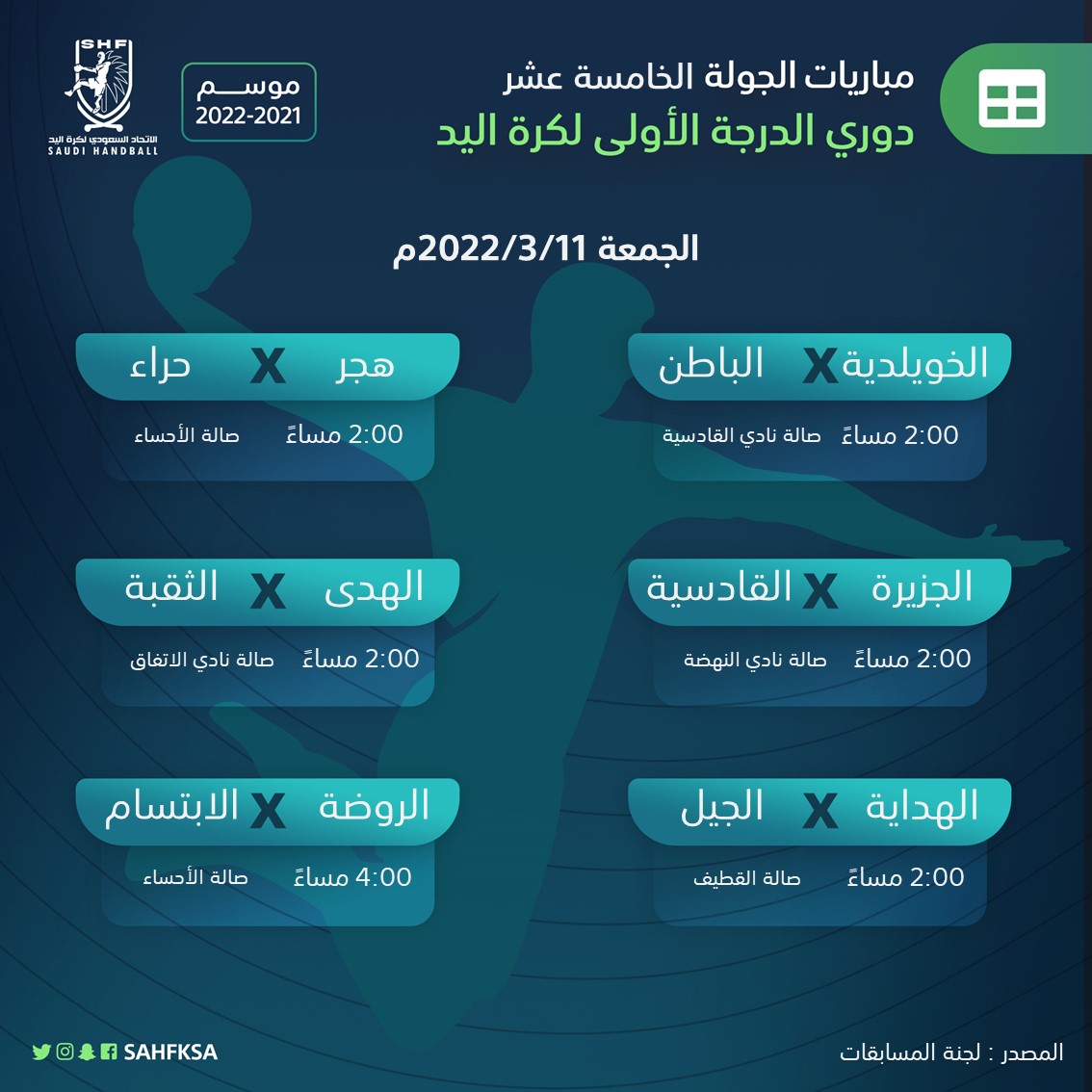 الأهلي يستضيف الخليج في افتتاح الجولة الـ 14 من ممتاز اليد